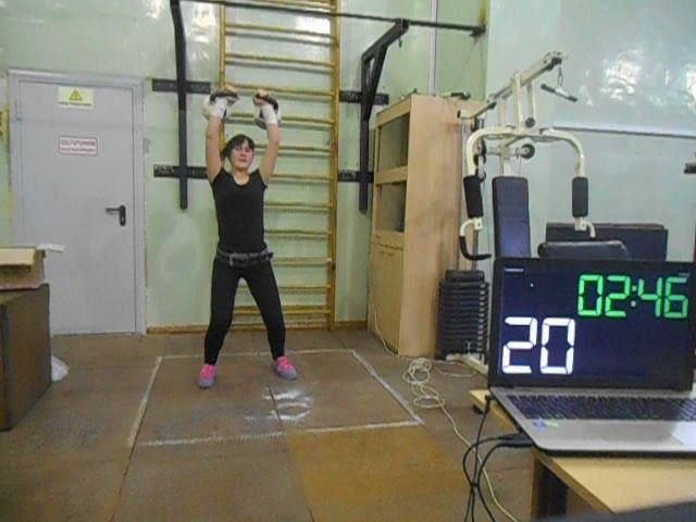 Гиревой спорт. Сазанова Алёна 2008 г. 4 этап Онлайн Кубка мира "Двоеборье" Толчок 2-х гирь 10 кг.