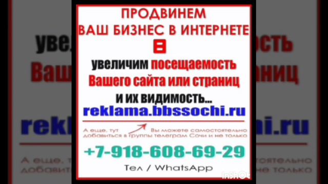 Запишите, *ВСЕГДА ПРИГОДИТСЯ:* РЕКЛАМА В ИНТЕРНЕТЕ, (*РАСКРУТИМ ВАШ БИЗНЕС – ТОВАРЫ, УСЛУГИ, САЙТЫ*): *ЦЕНА, варианты, скидки:* https://reklama.bbssochi.ru *ВНИМАНИЕ:* Возьмёт на себя раскрутку ваших услуг, фирм, сайтов, товаров, продвижение и рекламу в интернете: + ДОБАВИМ ВАС: в ВАТСАП группы: +7-918-608-69-29 в ТГ группы: https://t.me/Andrey220280 +79882316877 *Или добавляйтесь сами:* https://www.groups-sochi.bbssochi.ru *Рекламное агентство* «ББС СОЧИ» 1. *Сайт:* https://reklama.bbssochi.ru 2. *Скидки и новости Сочи:* https://bbssochi.ru 3. *Скидки на маркетплейсах:* https://saterno.ru 4. *Все услуги Сочи:* муж на час, ремонт квартир в Сочи: https://uslugi-byta.ru 5. *Форум Сочи,* ответы на все вопросы: https://forum.bbssochi.ru 6. *Все группы объявлений Сочи в ТГ:* https://t.me/addlist/W5JiGz0XFNpiZmQy 7. *Ссылки на группы ТГ:* https://www.groups-sochi.bbssochi.ru 8. *Бесплатная доска объявлений:* https://board.bbssochi.ru Ватсап: +7-918-608-69-29 ТГ: https://t.me/Andrey220280 +7-988-231-68-77 #сочи #реклама #группы
