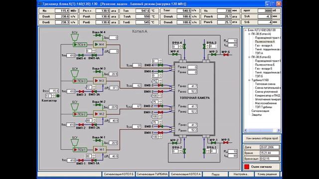 Демонстрация работы с тренажером дубль-энергоблока КТ-160(135)-130 Назаровской ГРЭС