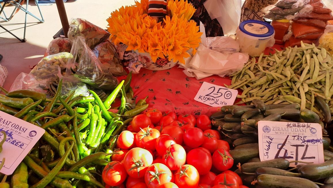 ВТОРНИЧНЫЙ БАЗАР В АЛАНИИ (ТУРЦИЯ). овощи и фрукты, сыры