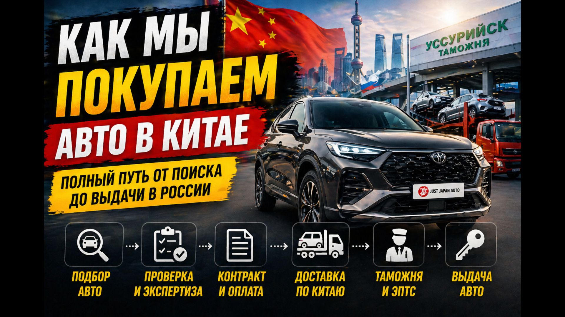 Добрый день, дамы и господа. Мы побывали в Китае и все увидели своими глазами. В этом видео мы расскажем все- от поиска авто в Китае до вручения авто в Уссурийске. Чуть позже мы снимем видео из Китая и вы воочию увидите, как там все происходит. А пока скрупулезно разбираем на молекулы все этапы, которые проходит ваш авто из Китая, заказанное через нашу компанию. Всем приятного просмотра. Подписывайтесь, ставьте лайки и пишите ваши комментарии. Наши другие каналы: Youtube: https://www.youtube.com/@JustJapanAuto VK: https://vk.com/mikhail201082 Дзен: https://dzen.ru/id/666acb526005b730e817bc33 ТГ: https://t.me/JustJapanAuto МАХ: https://m-x.su/justjapanauto