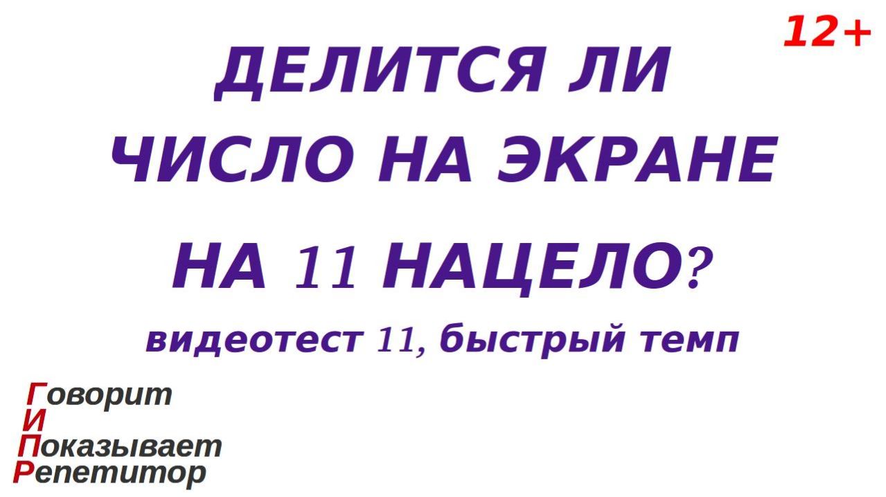 Категория 12+. Этот видеоролик - основа эпизода игры в репетитора и ученика и позволяет тренироваться применять признак делимости на 11 нацело (без остатка). Правила игры в этом эпизоде такие: после запуска видео репетитор-компьютер (планшет, смартфон, телевизор) показывает (отображает) на экране число, а вопрос репетитора следующий: "Делится ли изображенное число на 11 нацело?". Игрок-ученик должен дать ответ (вслух или про себя). Через некоторое время на экране появляется правильный ответ, с которым нужно сравнить свой собственный. Затем показывается следующее число и т. д. Цель игрока-ученика - дать как можно больше правильных ответов. Если все ответы верные, это считается абсолютной победой ученика в этом эпизоде игры. Я рекомендую это видео в первую очередь детям, осваивающим тему "Признаки делимости нацело". Таким образом, ролик представляет собой игровой видеотест, имеющий общие черты с программой-тренажером, дающей онлайн примеры и ответы на них. Показ числа длится 4,5 секунды, ответа - 1,5 секунды. Это, на мой взгляд, быстрый темп. Если вы добились успехов в этом и других роликах на эту же тему в быстром темпе, я считаю, что Ваши проявленные навыки находятся на высоком уровне. Если тема игры Вам интересна, но Вам кажется, что вопросы задаются очень часто и Вы не успеваете продумывать ответы, то попробуйте потренировать навыки при помощи видеотестов на эту же тему в среднем темпе. Если же тема не интересна, то не забывайте - это игра и она не должна идти по принуждению. При создании ролика мной преследовалась следующая цель: дать ненавязчивый игровой материал, помогающий повторять пройденную тему детям, с которыми я, как репетитор, индивидуально вживую проводил занятия по арифметике и алгебре. При выборе примеров, времени показа примера, количества примеров в одном ролике, продолжительности ролика, используемых цветов и других параметров в первую очередь я полагался на результаты собственных наблюдений, полученных в процессе указанных занятий. А именно, конкретизирую, перечисленные и другие параметры выбраны так, чтобы на протяжении одного эпизода игры (времени показа одного видео) игрок-ученик мог давать больше половины правильных ответов и при этом не уставал. При таком подходе к созданию ролика главное, чего я добился в своей практике общения с указанными выше детьми, состоит в следующем: каждый игровой эпизод не вызывал отторжения, а наоборот, настраивал на продолжение игры, а, значит, на очередную тренировку вычислительных навыков без постороннего принуждения. Поскольку предлагаемая игра подразумевает развитие навыков, применяемых в образовательном процессе ребенка, ролик отнесён к категории "Образование". Но я подчеркиваю - ролик не создавался как образовательный материал, соответствующий государственным стандартам в сфере образования, методическим указаниям и рекомендациям для образовательного процесса, т. е. образовательным материалом он не является. Также, по моему мнению и отзывам некоторых моих подписчиков, результат моей работы оказался полностью или частично подходящим ответом на такие популярные поисковые запросы, как: - признак делимости на 11; - признак делимости чисел на одиннадцать; - математика признаки делимости; - упражнения на признаки делимости; - признаки делимости натуральных чисел. Я выкладываю этот 